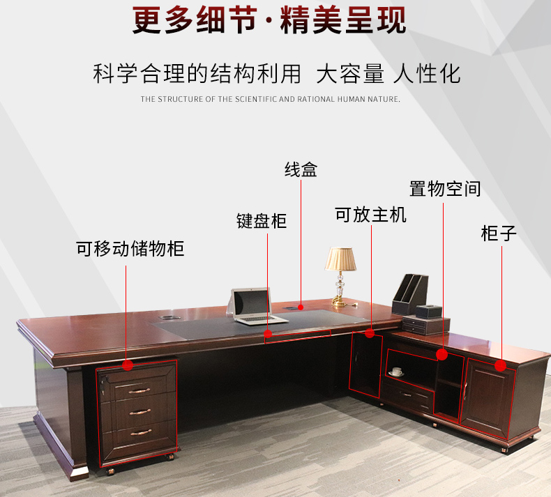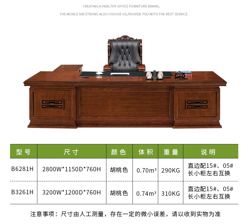 胡桃色實木油漆大班臺B16015H