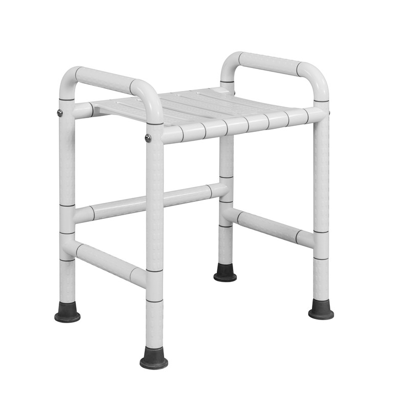座便淋浴兩用凳 表層選用專業抗菌尼龍 尼龍層厚度3.5mm,獨特抗UV抗老化處理,延長使用壽命。握手防滑設計,手感舒適,安全可靠; 內層采用1.6mm厚立體結構鋁合金管材,管徑27mm,堅固耐用; 4個腳帶4個大吸盤能牢固的吸附在地面上,安全牢固